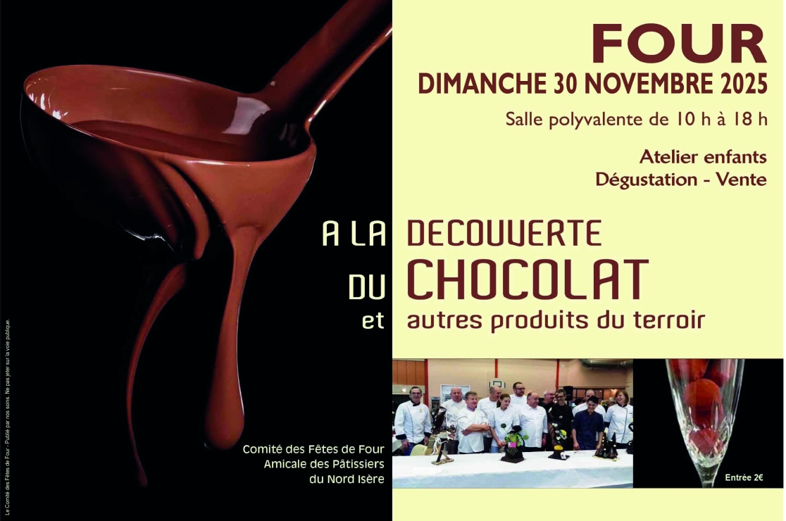 Le Comité des Fêtes de Four organise en association avec l'Amicale des Pâtissiers du Nord Isère comme toutes les années la journée gourmande "A LA DECOUVERTE DU CHOCOLAT et autres produits du terroir".