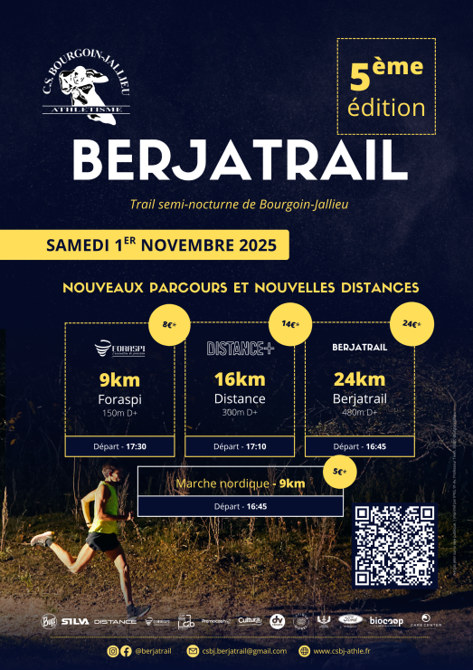 Le Berjatrail revient le 1er novembre 2025 pour sa 5e édition. Véritable trail semi-nocturne, il recrée l’ambiance unique de la SaintéLyon… mais à Bourgoin-Jallieu.