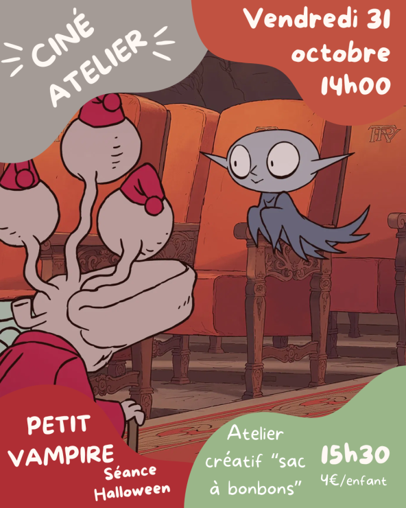 Séance suivie à 15h30 d'un atelier créatif pour les enfants : fabriquez votre propre sac à bonbons d'Halloween. Supplément : 4€ par enfant. Nombre de places limité pour l'atelier. Inscription conseillée par mail : [email protected]