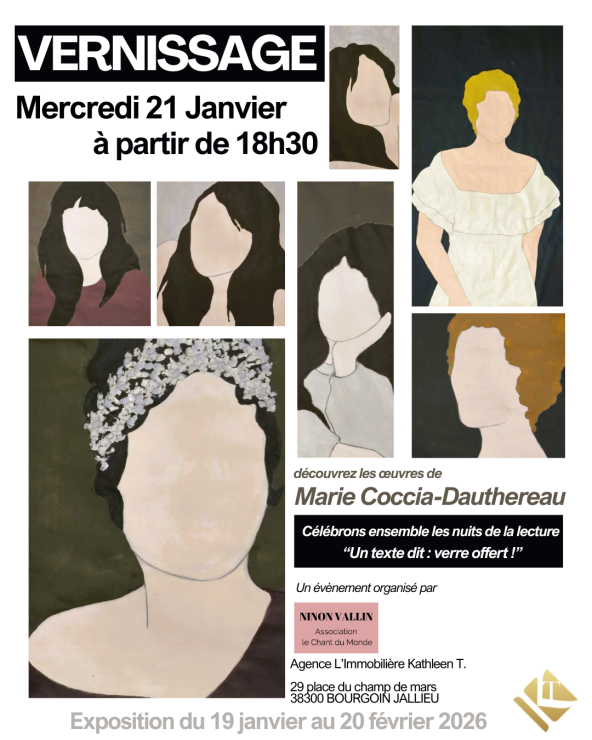 Ouverture Du 19/01 au 20/02/2026. Exposition vissible durant les horaires d'ouverture de l'agence. Vernissage le 21/1 à 18h30.