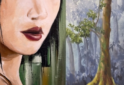 Par ses pinceaux, David Brunet tisse un dialogue entre beauté et mystère, entre l’humain et le décor.