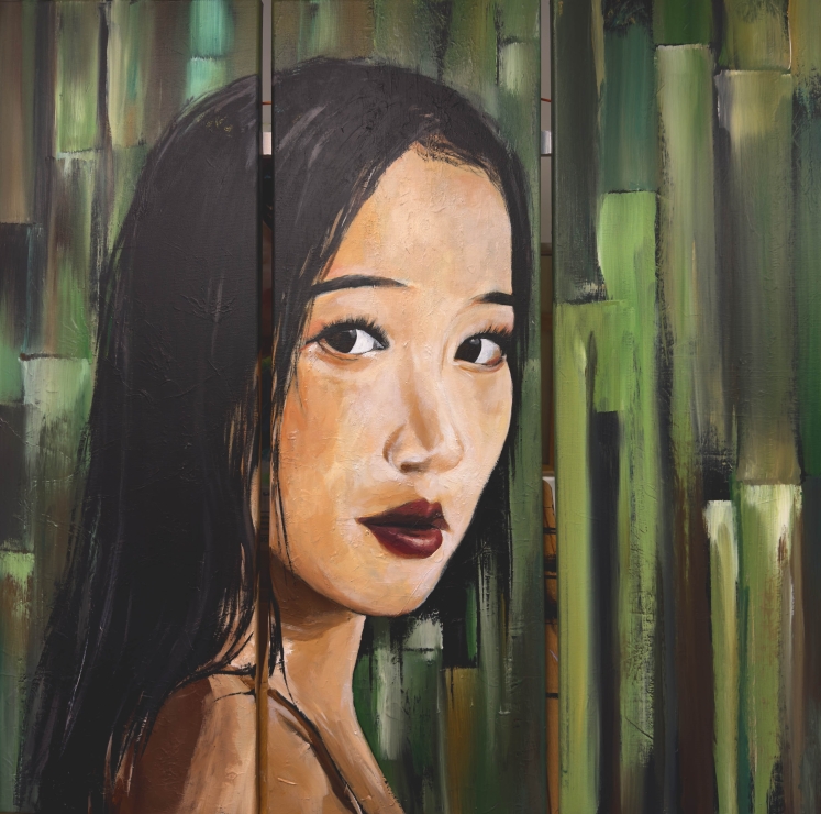 Ses geishas, figures élégantes et énigmatiques, semblent suspendues entre tradition et imaginaire.