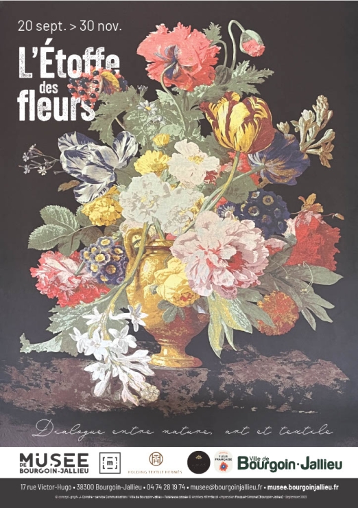 L'exposition met en lumière de façon admirable ce lien singulier entre fleur et textile, qui a forgé l'identité de l'industrie textile de notre territoire : De superbes compositions florales, réalisées par le fleuriste berjallien "La Petite Abeille", font écho aux étoffes de toutes les époques, issues des archives textiles d'HTH - Holding Textile Hermès. Une scénographie rafraichissante qui croise le regard d'un jeune collectif engagé dans la promotion de la fleur française avec les créations les plus audacieuses du textile de mode d'aujourd'hui.
