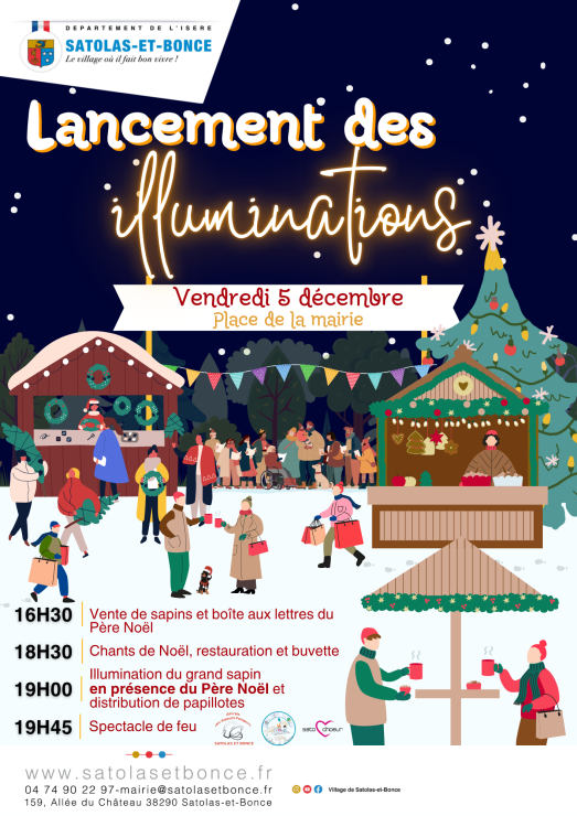 Vente de sapins, buvette, spectacle de feu, concert et illuminations du grand sapin sur la place, une soirée haute en couleurs et en lumières !