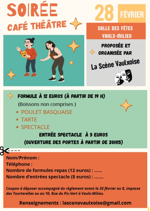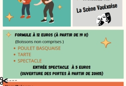 - Formule repas (poulet basquaise et dessert) + spectacle à 12€