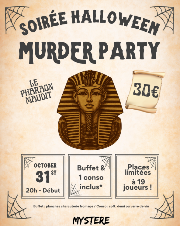 Plongez dans une Murder Party immersive, où chaque participant incarne un personnage, avec ses secrets, ses objectifs… et peut-être un crime à dissimuler.