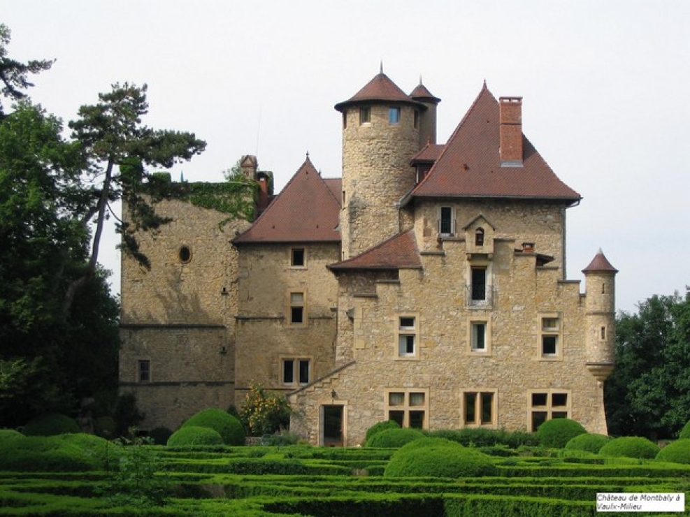 Au XVIe siècle, les terres et la maison forte de Monbaly (ou Montbaly) sont rachetées par Octavien Emé de Saint-Julien, président au Parlement de Grenoble et futur maître des requêtes de l'Hotel du roi François Ier. Racheté par M. Charvet (architecte à Lyon, professeur à l'école des Beaux-Arts) en 1875, alors qu'il tombait en ruine, le château fut reconstruit en style néo-médiéval. La maison-forte dont l'origine pourrait remonter au XVe siècle semble avoir été transformée, voire reconstruite à la fin du XIXe par l'architecte Léon Charvet. Flanquée de tourelles en encorbellement, d'une tour carrée et précédée d'un jardin à la française, l'édifice quoique d'une architecture simple, présente un véritable intérêt. Les deux corps de logis sont réunis par une porte principale d'une conservation parfaite qui constitue un type rare et curieux ; elle donne sur une cour intérieure et est surmontée de mâchicoulis. Toutes les ailes ont conservé leur cheminée et l'une d'elles, du XVe siècle, porte les armes des Soliers, fondateurs de la maison. Le domaine relevait des barons de Maubec, de la famille de Bocsozel. Sur la propriété, dans les années 1970, au nord-ouest du plateau, des traces rectangulaires accompagnées de tuiles ont été observées tandis que non loin de là, auraient été discrètement exhumés quelques sarcophages.