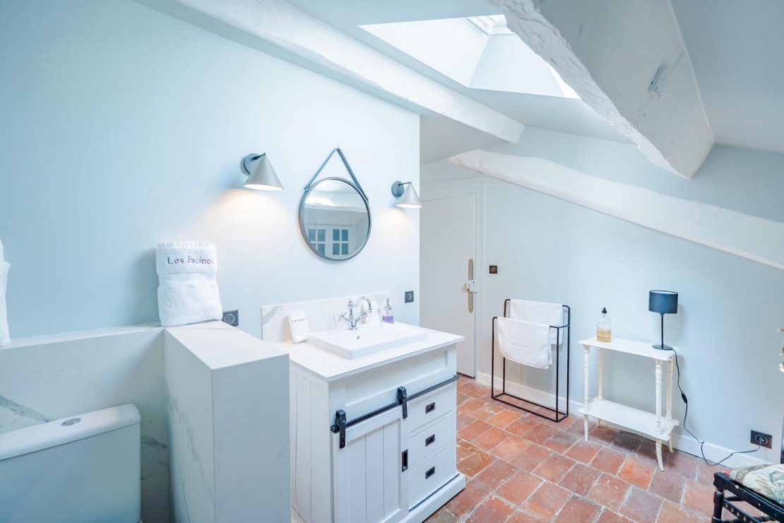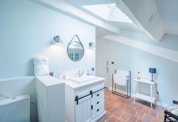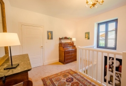 A l'étage : Ch.1 (2 lits 90x200 cm, ou jumelables en 180x200 cm, salle de bains), Ch.2 (2 lits 90x200 cm, ou jumelables en 180x200 cm, salle d'eau-wc), Ch.3 (2 lits 90x200 cm ou jumelables en 180x200 cm), Chambre 4 (2 lits 90x200 cm ou jumelables en 180x200 cm), salle de bains avec douche et wc, wc supplémentaire sur le palier. Chauffage central, TV, Wi-Fi (fibre), accès au parc du Château, parking.